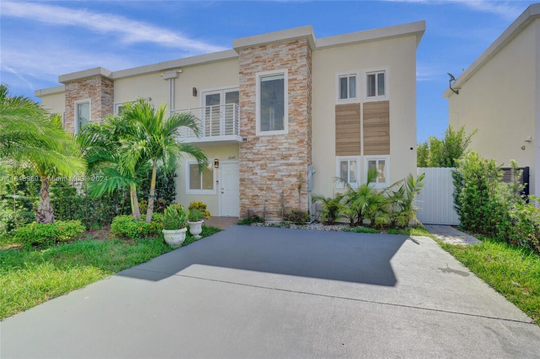 Move-in ready townhome with 3 bedrooms and 2.5 bathrooms, conveniently located near the Turnpike in Homestead. This bright and updated home features an upgraded kitchen and bathrooms, impact windows, and tile flooring throughout. Enjoy a large patio with a yard, complete with a mango tree, perfect for outdoor relaxation. A special water filtration system is installed for your convenience. No association application required – move in quickly!